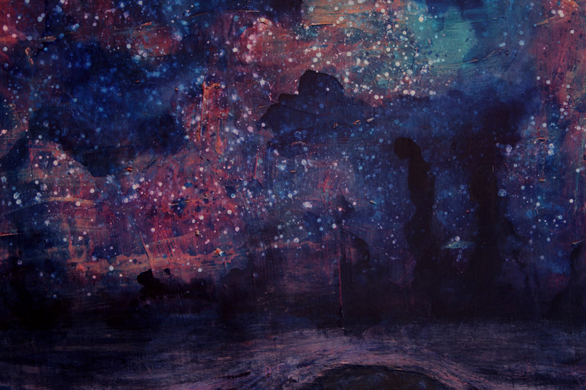 Floating World: Cosmos & Tsunami (Detail), acrylic on wood, 4 x 4 feet, 2011, (sold).