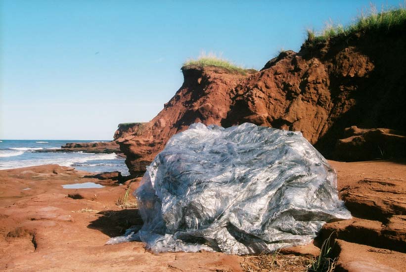 Plastic Paintings: East Point Blob, acrylic in plastic cling wrap sculpture, photograph of installation, 2007.