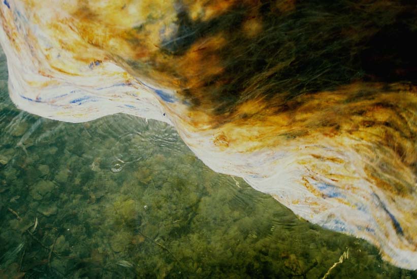 Plastic Paintings: Hanlan's Point 2, Toronto Island, acrylic in plastic cling wrap sculpture, photograph of installation, 2007.