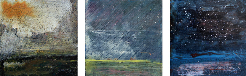 Moments: Rain Storm Clearing Stars, acrylic on wood, 3 Paintings: 8 x 8 inches, Feb.-Dec. 2010, sold.