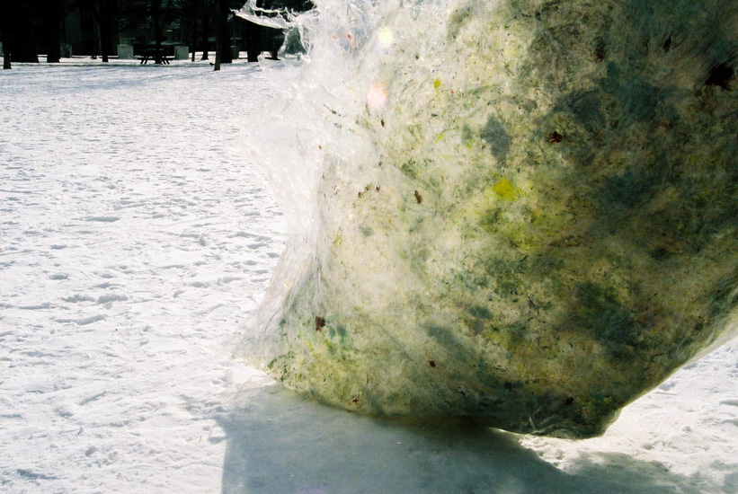 Plastic Painting: Snow Installations 3: Grange Park, Toronto, acrylic paint in plastic cling wrap, 2007.