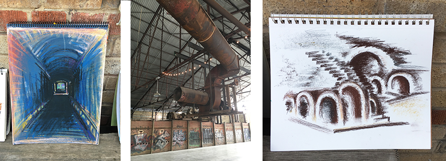 Evergreen Brick Works. Drawings by Alison Michell, Janet Hope, Clover Clarke, Simone Diselets, Christine Dart. Photo: Gareth Bate.
