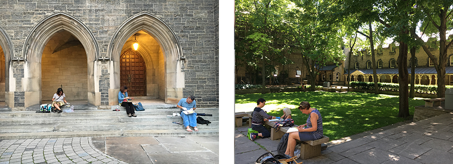 University College and Hart House at the University of Toronto. Drawings by Clover Clarke, Angelique Davies and Gary Christie. Photo: Gareth Bate.
